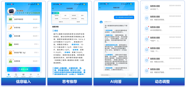 “养分专家智慧施肥大模型”以全国28种主要作物百万级养分实测大数据为基础,依托DeepSeek大语言模型的逻辑推理能力,构建了“专业施肥模型”与“云端智慧大脑”协同的智慧施肥大模型及多智能体系统。该大模型的优势在于推荐流程的轻简化、施肥决策的动态化和服务农户的效率性显著提升,通过深度融合土壤理化性质、遥感监测、气象预报等多维度农业数据,构建起一个动态更新的数字决策体系。用户仅需输入种植作物、目标产量与所用肥料等关键信息,系统即可借助DeepSeek的数据挖掘与智能推理技术,对海量数据进行实时分析与建模,一键生成包含肥料用量、施肥时期、施肥位置等要素的个性化精准方案。这种基于多源数据融合的决策模式,不仅实现了施肥效率的倍增,更通过持续的数据反馈与模型优化,确保了推荐方案在不同农艺场景下的准确性与适应性,真正实现了数据驱动的精准农业管理。