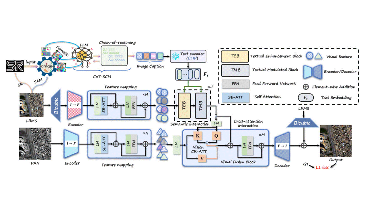 近期,中国科学院合肥物质院智能所谢成军与张洁团队将多模态融合方法应用于遥感图像全色锐化领域,相关研究成果以“Exploring Text-Guided Information Fusion Through Chain-of-Reasoning for Pansharpening”为题发表在地球科学和遥...