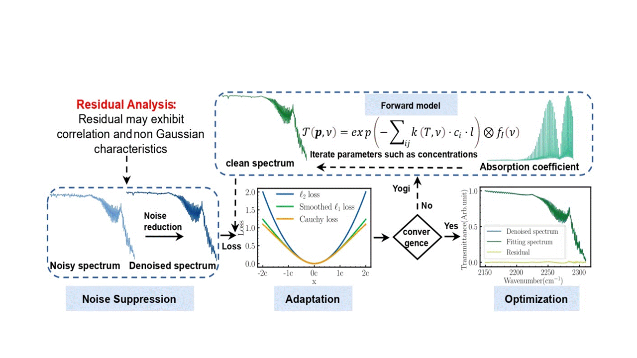 近日,中国科学院合肥物质院安光所红外精密仪器团队在傅里叶红外光谱(FTIR)分析算法研究领域取得系统性突破。团队面向实际应用,构建了 “混合物识别 - 基线重构 - 鲁棒定量 - 宽动态分析”研究框架,显著提升了复杂应用场景...