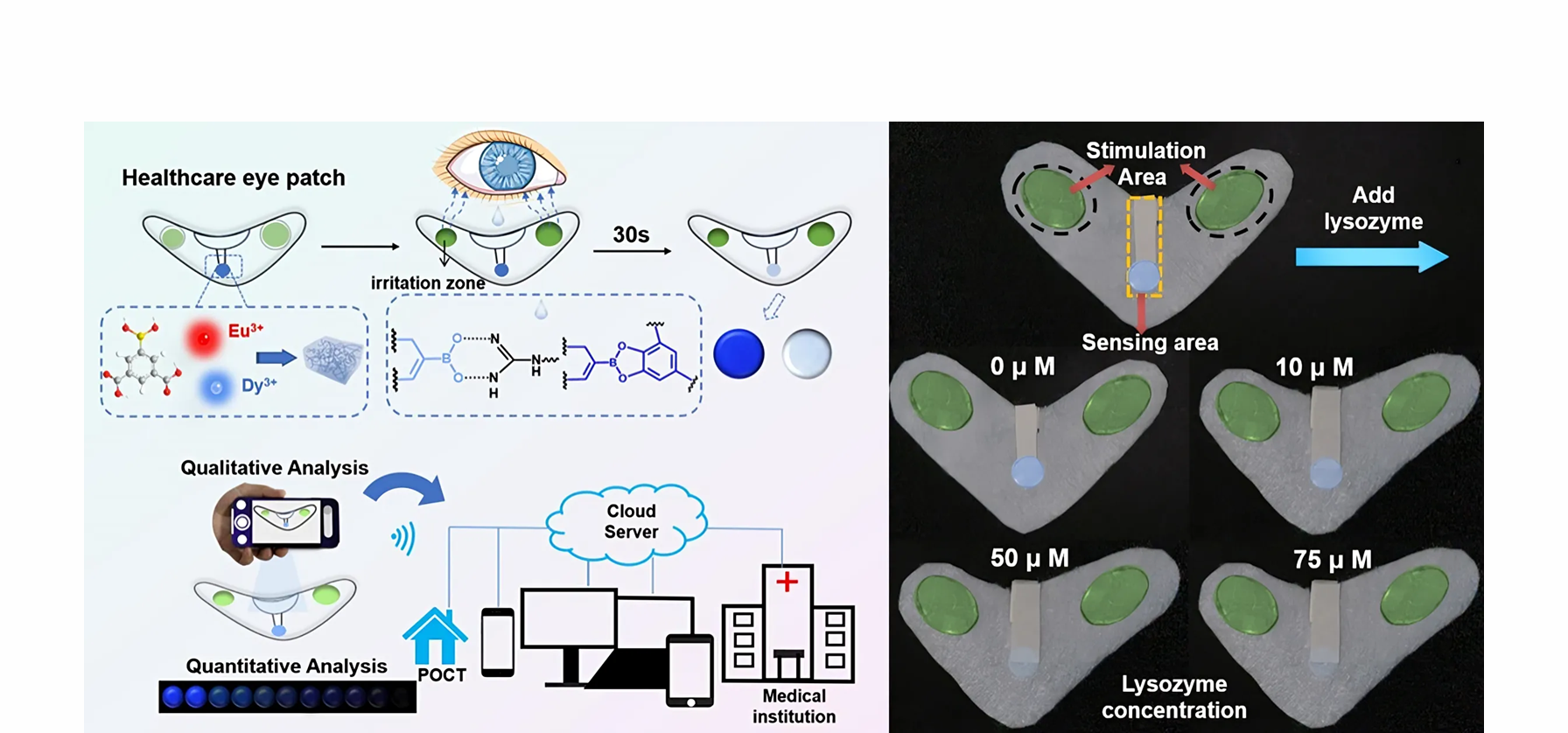 近期,中国科学院合肥物质院固体所蒋长龙研究员团队在荧光非侵入式可视化监测方面取得新进展。研究团队利用铕-镝金属有机框架(Eu-Dy MOF)凝胶构建了一种非侵入式可穿戴眼贴荧光传感器,并将其与智能手机的颜色识别功能相结合,实现...