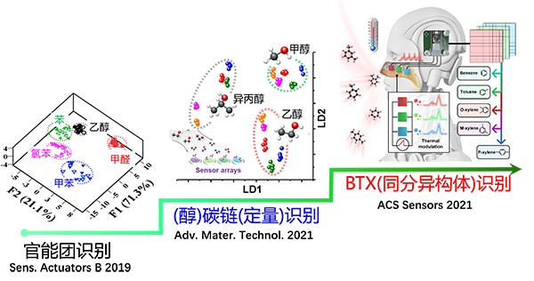 近期,中科院合肥研究院安光所激光中心方晓东、孟钢研究员团队在半导体型VOCs分子识别系统研发方面取得系列进展。相关成果分别以“基于非选择性金属氧化物的智能传感系统识别苯系物分子”和“氧化镍传感器阵列热调制定量识别醇类...