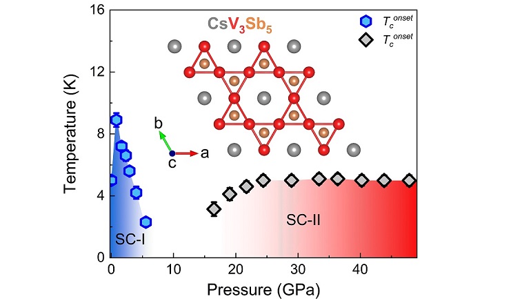 近期,中科院合肥研究院强磁场中心高压研究团队与安徽大学等单位合作,利用高压研究手段发现了准二维拓扑笼目(kagome)金属CsV3Sb5中的双dome型非常规超导电性。相关研究结果以“Pressure-induced Reemergence of Superconductivity in...