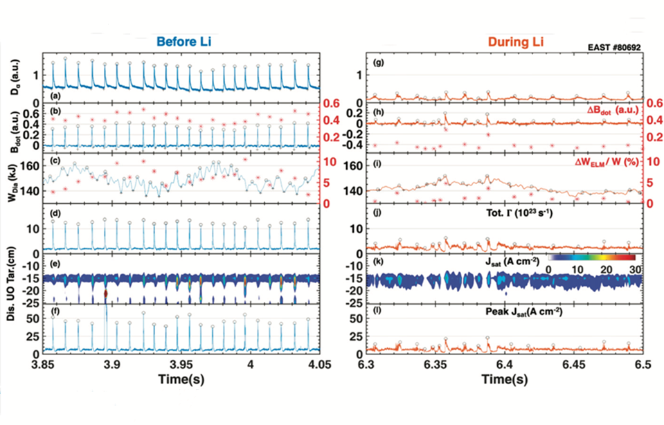 伴随高约束模式等离子体,大幅度边界局域模(ELM)准周期性的爆发会在百微秒时间尺度内释放出装置第一壁材料不可承受的瞬态高热负荷,因此如何抑制大尺度ELM爆发是未来聚变堆实现高性能稳态运行的严峻挑战之一。等离子体所胡建生研究...