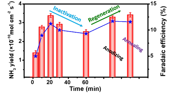 近期,中科院合肥研究院固体所纳米材料与器件技术研究部环境与能源纳米中心在常温常压下电催化氮气还原合成氨的研究中取得新进展,合成了无支撑且富含氧空位的氧化铌纳米阵列Nb2O5-NCF,并探究其作为电极催化剂在电化学合成氨中的失活...