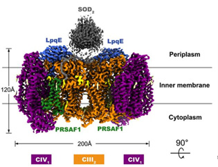 近日,稳态强磁场实验装置(SHMFF)用户南开大学饶子和院士研究组领衔的联合研究团队首次报道了耻垢分枝杆菌呼吸链超级复合物III2IV2SOD2原子分辨率结构,并联合中科院强磁场科学中心极端条件电子自旋共振实验室应用SHMFF低温电子自旋...