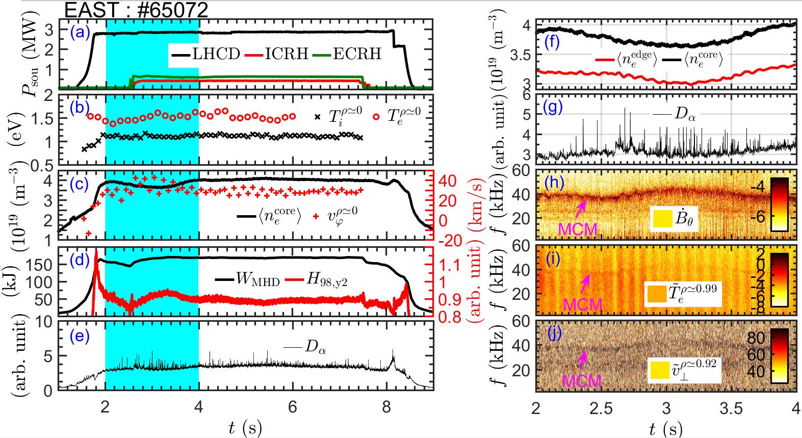 近日,等离子所EAST团队科研人员在托卡马克高约束模台基磁相干模研究方面取得重要进展。相关研究成果由徐国盛课题组的陈冉副研究员以“Experimental Study on the Magnetic Coherent Mode in the H-mode Pedestal of EAST”为题发表于...