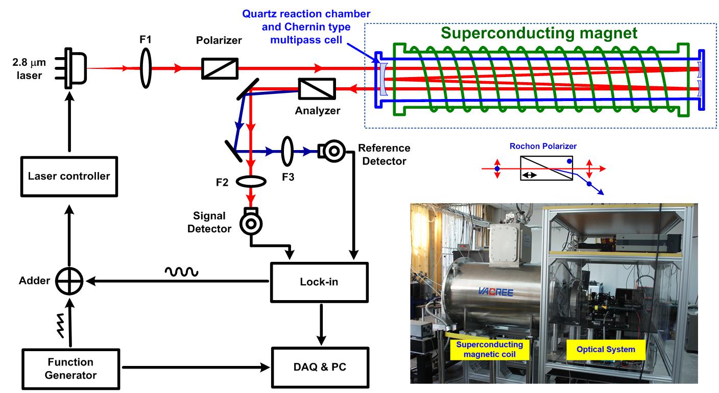 安光所张为俊研究员课题组和强磁场科学中心陈文革研究员课题组、万瑞冷电科技有限公司合作建立了国际上首个基于超导磁体的磁旋转吸收光谱测量OH自由基装置,实现了对OH自由基106 molecule/cm3的实时原位测量。近期,相关研究工作...