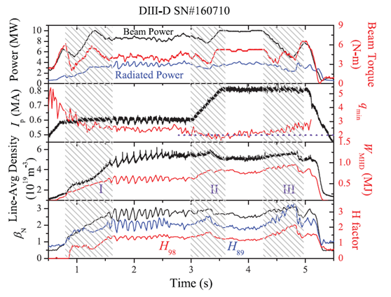 日前,DIII-D&EAST联合研究团队在DIII-D上进行了实验,该实验将2013年DIII-D/EAST联合实验中测试的高极向比压、高最小安全因子运行模式推广到了具有更高等离子体电流(0.8MA)和更高的归一化聚变性能参数的感应运行模式。该实验旨在探...