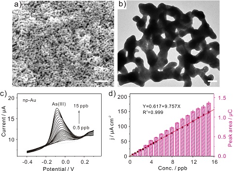 近期,中国科学院合肥物质科学研究院智能所刘锦淮研究员和黄行九研究员课题组在三维多孔的金纳米材料增强As(III)检测电化学行为方面的研究中取得新进展。该工作对于揭示As(III)在三维多孔的纳米材料上的电化学行为具有重要的科学意义...