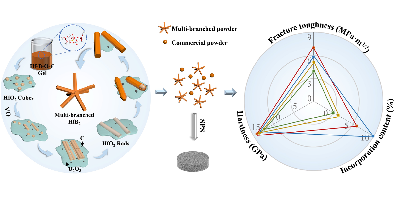 近期,中国科学院合肥物质院固体所热控功能材料科研团队与哈尔滨工业大学张幸红教授合作,在硼化物陶瓷的制备和性能研究方面取得新进展,成功制备了具有高结晶性和高长径比的多支状硼化物陶瓷微棒,以此为增韧相加入硼化物陶瓷基体中...
