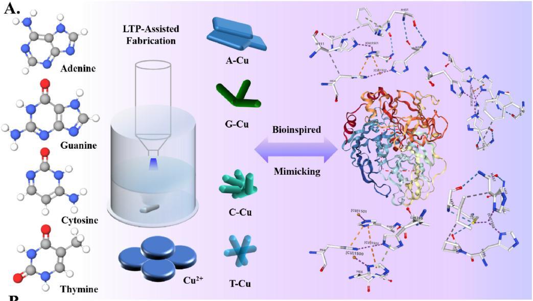 近日,中国科学院合肥物质院智能所黄青研究员课题组在纳米酶研究方面取得新进展,首次采用气液界面介质阻挡(DBD)低温等离子体 (LTP) 技术,成功制备了一系列具有漆酶样活性的不同碱基配体 Cu 金属有机框架 (MOF) 纳米酶,并编码...