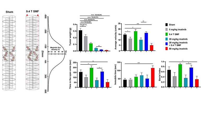 近日,中科院合肥研究院强磁场中心张欣课题组在稳态强磁场联合靶向药物治疗肿瘤方面取得新进展。研究人员联合9.4 T稳态强磁场与药物甲磺酸伊马替尼处理胃肠间质瘤荷瘤小鼠,发现强磁场不仅可以增强伊马替尼的抗肿瘤效果、降低药物对组...