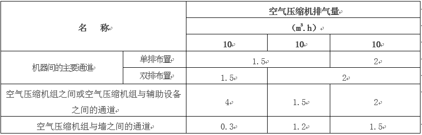 2.6.1 空压站的空压机布置,其通道宽度不小于表的规定: