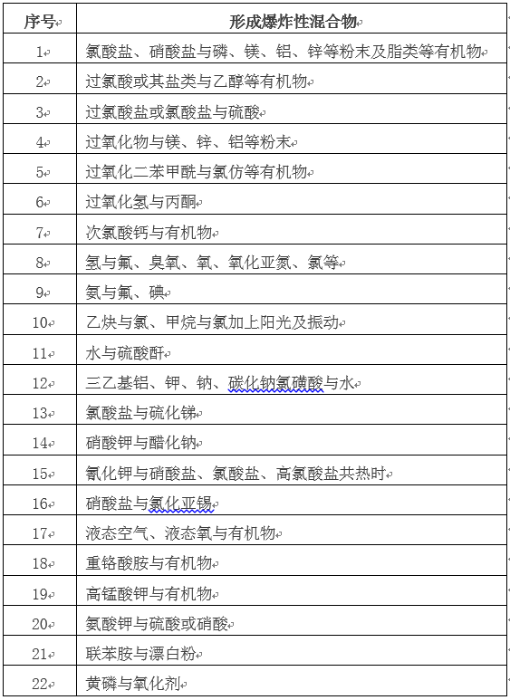 2.1.2 危险化学品应采用分类、分间,分堆贮存;严禁将自身能形成爆炸性的物质,以及相互接触或混合后能引