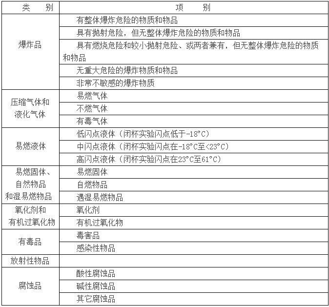 8.1.1 本库房的危化品包括以下类别:各岗位人员依据附录2《危险化学品分类》,根据特性具体确定其项别。