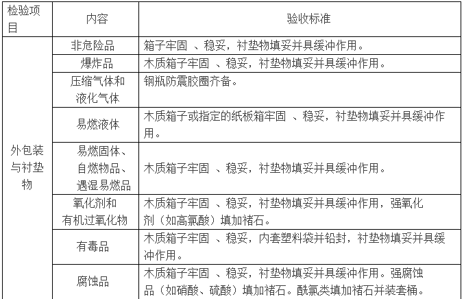 7.3 各类危化品的容器和包装均应封闭严密,完整无损,具体验收内容执行附录1《化学品内外包装验收标准》。