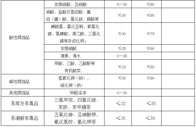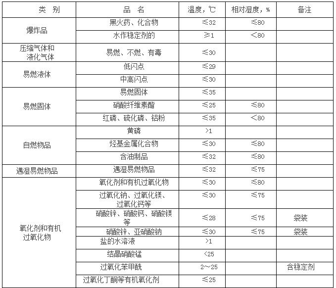 l 各类危险化学品温、湿度条件,见附录4《各类危险化学品温、湿度条件一览表》。