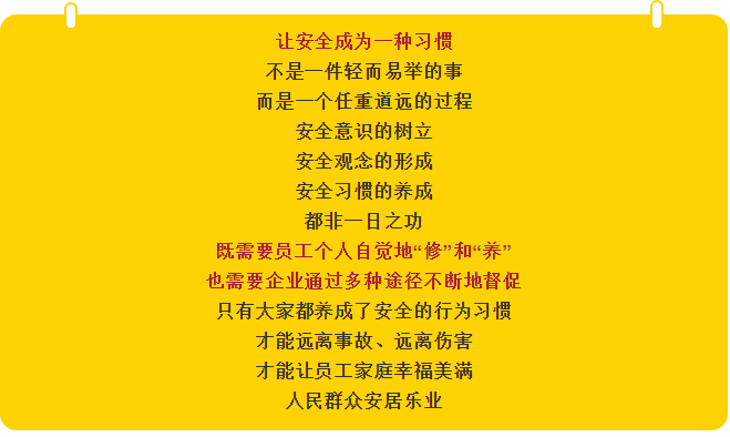 动一线员工从“要我安全”向“我要安全”转变,促使员工自觉养成安全的行为习惯。