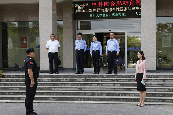 9月30日上午,合肥市公安局治安支队党总支委员王家军、合肥市公安局保安管理处处长阮俐及合肥市公安局蜀山分局治安大队保安管理工作负责人费健组成督查组到科学岛对园区治安、保安公司开展专项安全生产和反恐演练检查。安全保密处处长谭立青陪同检查。