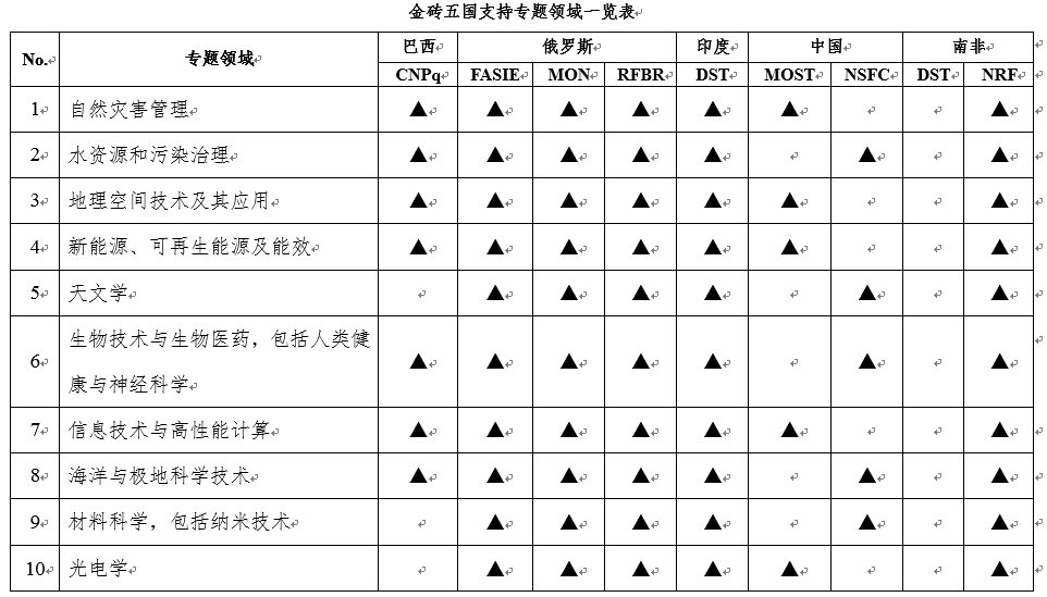 为进一步务实推动金砖国家间科技创新合作,2016年,金砖五国成立了科技创新资金资助方工作组,签署了《金砖国家科技创新框架计划》及《实施方案》,决定在该框架下联合征集多边研发项目,该倡议旨在支持与促进来自至少3个国家的合作伙伴的合作。目前,来自金砖五国的以下资金资助方已加入该倡议。