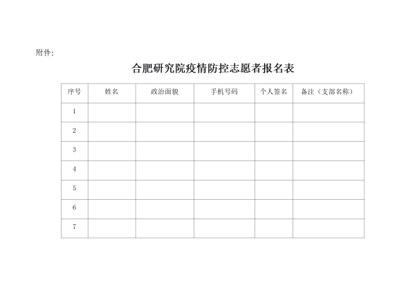 当前,合肥市疫情防控呈现病毒多变、疫情严峻、风险巨大态势,新问题新挑战不断出现。为深入贯彻落实习近平总书记关于疫情防控的重要讲话指示精神和安徽省委省政府相关工作部署要求,全力支持合肥市疫情防控工作,共同守护人民群众健康安全,合肥研究院党委号召研究院属各级党组织、全体共产党员、干部职工立即行动起来,主动报名参加两码查验、体温测量、卡点执勤、秩序维护等疫情防控志愿服务工作。志愿服务的具体安排和要求听从合肥研究院疫情防控办公室和研究院驻地社区的统一安排。具体通知如下: