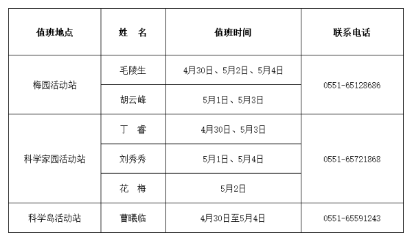 1.2022年五一节各离退休活动站集中休假时间为4月30日至5月4日,5月5日起正式上班。放假期间,离退休各活动站将安排值班人员。具体值班表如下: