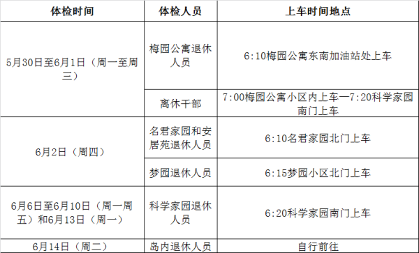合肥研究院关于接送市内离退休职工参加体检的提示