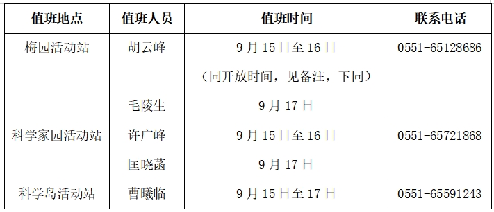 根据合肥物质院中秋节放假安排,现将9月15日至17日期间离退休服务工作和安全、值班等情况,温馨提示如下: