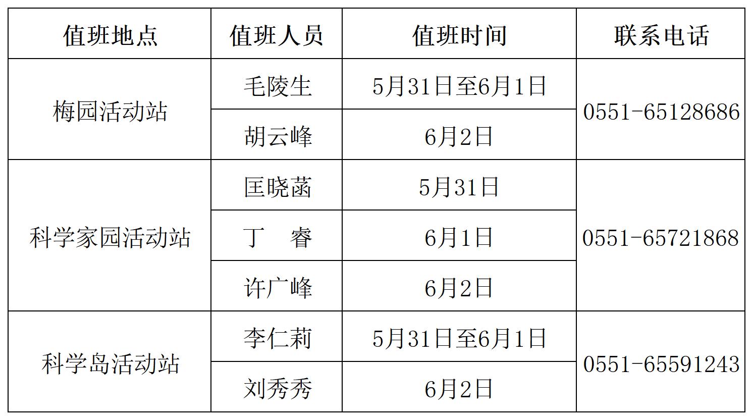 二、端午节期间离退休各活动站将安排值班人员,具体值班表如下: