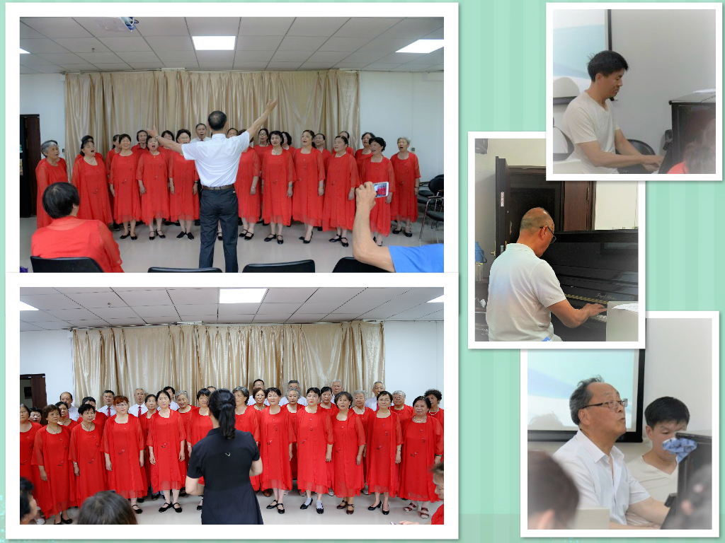 梅园、名君两分会的仲夏演唱会于6月30日下午在梅园公寓的声乐班教室拉开帷幕。演唱会由冉广珍主持,近30人参加,演出节目20个,会员们群情激昂,热情高涨。第一个节目是梅园分会全体会员的合唱《没有共产党就没有新中国》,演员们用自己的歌声表达了对共产党的热爱,对新中国的拳拳赤子之心。接下来是名君分会全体会员演唱的前苏联歌曲《纺织姑娘》。这些目不识“谱”老人居然用两个声部的表现力,向大家舒缓地展现出了纺织姑娘的美好画卷。