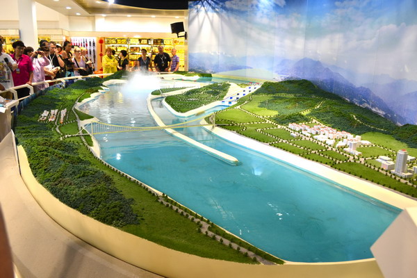 早就知道,三峡建大坝,秭归县城已全部被淹。如今这里是选址复建的,位置在大坝上游,隔江可遥望大坝。我们看完表演,就乘观光车游览。电瓶车依山就道前行,路左侧连绵的彩色展板不断闪过,展板上展示屈原的生平经历、各地端午习俗、儒家经典故事等等,让人应接不暇。我想,如果时间充裕,从容步行游览观看,那该多好啊!可惜我们为了赶路,只能这样走马观花了。遐想中,车停在一座牌坊前。牌坊上书“屈原故里”四个字,旁有清光绪十二年正月立的两座石碑,分别是“楚大夫屈原故里”和“汉昭君王嫱故里”——秭归出了这两位名人,真不简单啊!