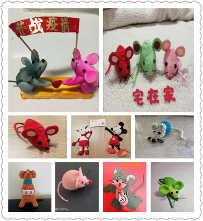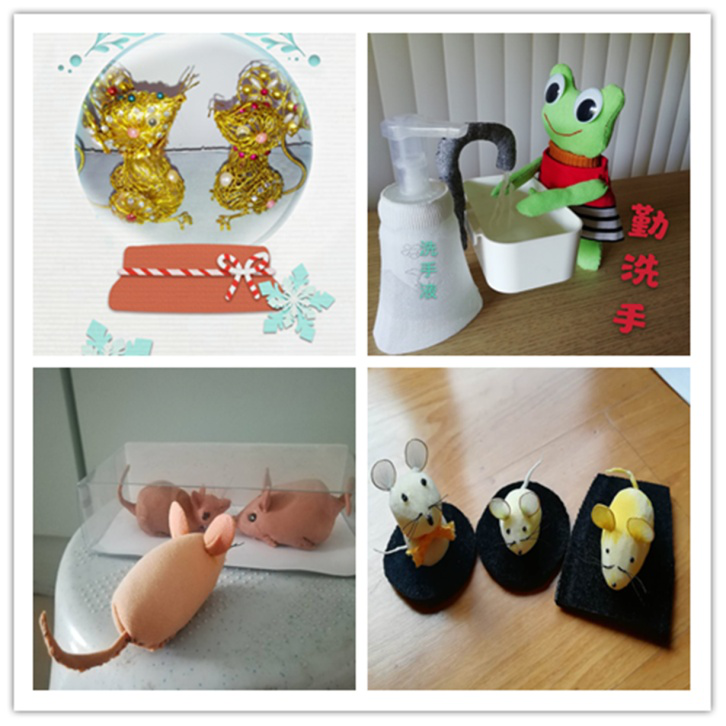 第一期正值过完年,朱老师教的是老鼠的制作,同学们结合教学,充分发挥想像,用丝网、针织、泥塑、金丝编、布艺布贴等各种材料做的老鼠,多有趣呀!连在外地的同学,虽工具和材料都在合肥,但也克服困难,想尽办法,创作了好几件惟妙惟肖的可爱作品。