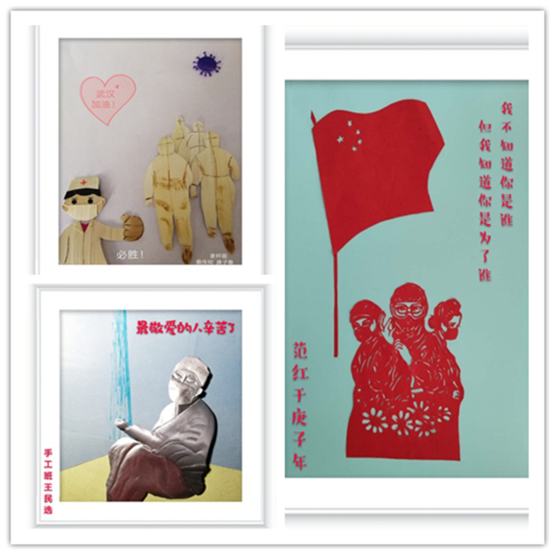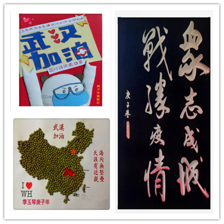 第二期正好接到合肥研究院的通知,为响应号召,老师和班长又组织大家运用所学技能,分别在家用各种材料制作一幅幅鲜活生动的抗疫作品,把对防疫的关心和对前方的问候、支持,通过作品的形式展现了出来。面对疫情我们在行动,我们宅在家里用行动表示了我们的信心:武汉加油!中国平安!