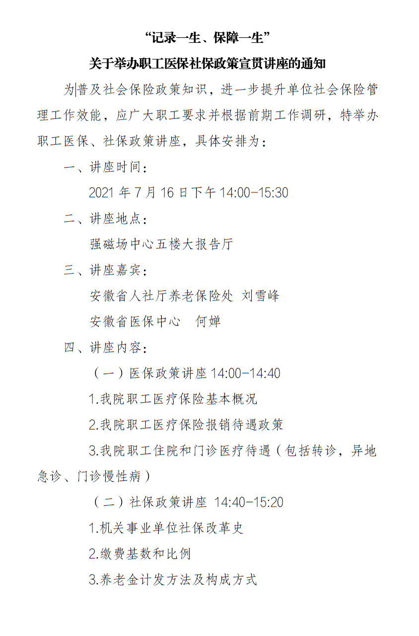 关于举办职工社会保险政策宣贯讲座的通知