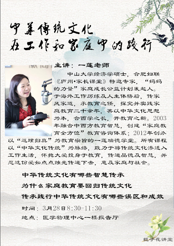 关于举办“中华传统文化在工作和家庭中的践行”讲座通知