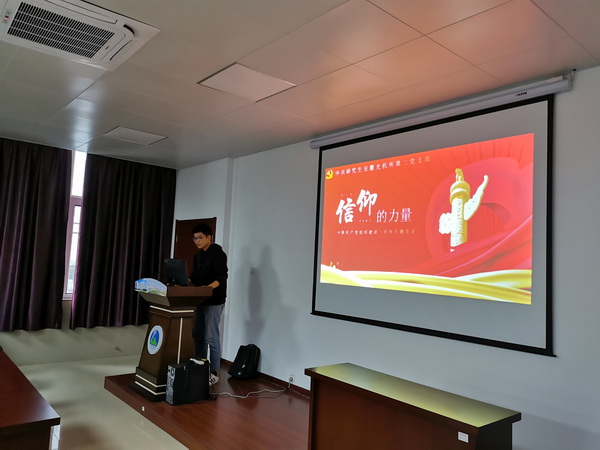 会议第二项集体学习环节由支部纪律委员徐翔主持,他以“信仰的力量”为主题带领大家进行了深刻的探讨与学习。会上同学们聚精会神,徐强同志也用了十足的感情进行了引人深思的分析。信仰是一种力量,是人民精神的钙。人民缺乏信仰,就如同身体缺了钙,会得“软骨病”,站不直走不动。徐祥同志列举了很多优秀党员的光荣事迹,包括地下党员赵云霄拒绝敌人“公开声明脱离党员身份即可活命”的要求的故事,以及党委发放的党员读物上的烈士事迹,让大家深刻懂得信仰可以升华世界上最伟大的爱。在座党员纷纷为之感到震撼,也表达了自己的感悟和领会。
