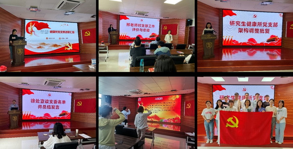 会议在庄严的国歌声中拉开序幕。首先,支部书记刘雨同志进行2020-2022年支部工作述职报告,她就支部整体概况、重点工作任务落实、党员模范先锋带头作用、特色活动等,分别作了详细清晰的汇报,并指出了存在的问题。班主任邢芬老师对支部过去两年的工作表示了肯定,也对支部规模愈发壮大感到欣慰,希望新一届支委能继续发挥党员先锋模范作用。研究生党委组织委员夏文彬老师宣读研究生党委《关于研究生健康所党支部换届及党支部架构调整的批复》,原研究生健康所党支部组织架构现调整为研究生健康所第一党支部和研究生健康所第二党支部。