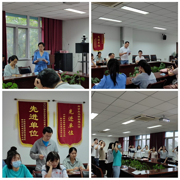大会按照党员转正规程,首先,蒋春旭同志宣读转正申请,就自己预备期以来在政治理论学习、科研工作生活等各方面情况进行了详细汇报,分析了不足之处,表明了改进决心。随后,支部邵长胜同志和杨强同志对蒋春旭同志进行评议,一致肯定了她在科研生活上的优异表现。经支部大会线下投票,与会党员全票表决通过,同意接收蒋春旭同志为正式党员。最后,夏文彬老师带领全体党员重温入党誓词。