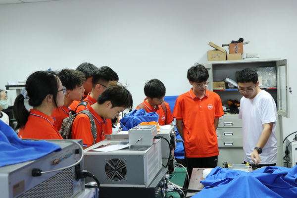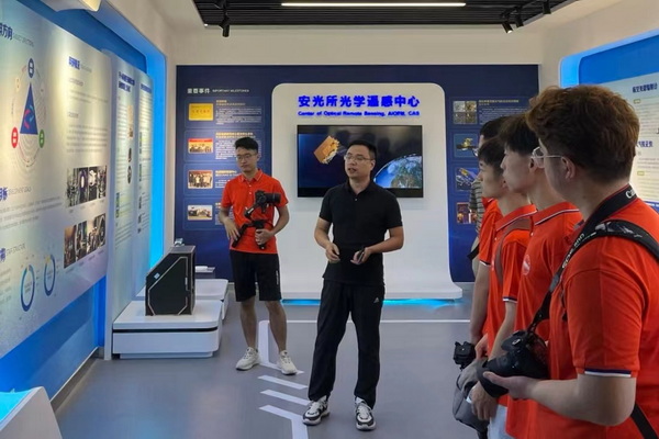 活动伊始,安光所综合管理办公室冯雪松主任对来自合工大的同学们表示了热烈欢迎,并就安光所的所况进行了详细介绍,希望同学们在本次活动中能够激发科研兴趣,为以后的科研学习奠定基础。紧接着,在综合办王晓林副主任和研究生第四党支部书记张海蓉的引导下,一行人分别参观了安光所高灵敏度光谱检测技术实验室、激光光谱技术实验室、晶体材料实验室、射线探测技术实验室、水/土环境检测技术实验室、近红外光谱实验室、傅里叶红外光谱实验室、差分吸收光谱实验室、颗粒物检测技术实验室和光学定标与表征技术实验室等重点实验室。在各个实验室的老师的详细讲解下,来自合工大的同学们对安光所各个研究方向的科研条件和平台设施有了更为深刻的了解。此外,在参观期间,同学们还结合所学知识和正在进行的大创实验内容与实验室讲解老师们进行了深入交流和学习。参观结束后,所内部分实验室老师以及5位本科毕业于合工大的研究生在交叉楼108会议室与学弟学妹们进行了面对面交流,分享科研学习中的经验,为同学们答疑解惑。活动结束后,同学们纷纷表示这次近距离接触高端科研仪器设备,并与专业大牛“零距离”对话的机会,不仅让他们感受到科技前沿的独特魅力,同时也更明晰了自己感兴趣的方向,对今后的学术选择有着莫大帮助。