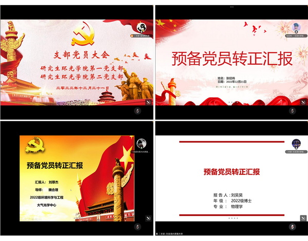 12月21日18:00,研究生环光学院第一、二党支部于线上腾讯会议召开支部党员大会暨十二月主题党日学习,研究生环光学院第二党支部书记雷雪枫同志主持本次会议。