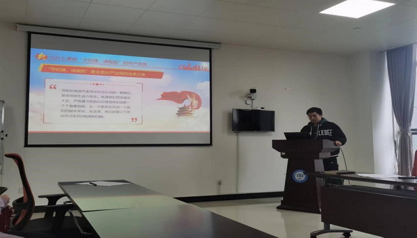 首先,钱钱书记进行题为“守纪律 讲规矩 争做一名合格共产党员”专题党课,针对过去一段时间党日活动以及党支部会议支部党员参与度不高等问题分析,提出改进措施。之后通报上年度组织生活会整改情况并代表党支部进行对照检查。