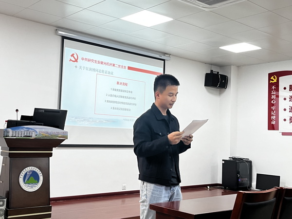 10月30日下午,研究生安徽光机所第二党支部召开支部党员大会,大会分为两部分,第一部分是关于江润博同志转正的决议,第二部分是党员学习与交流讨论。