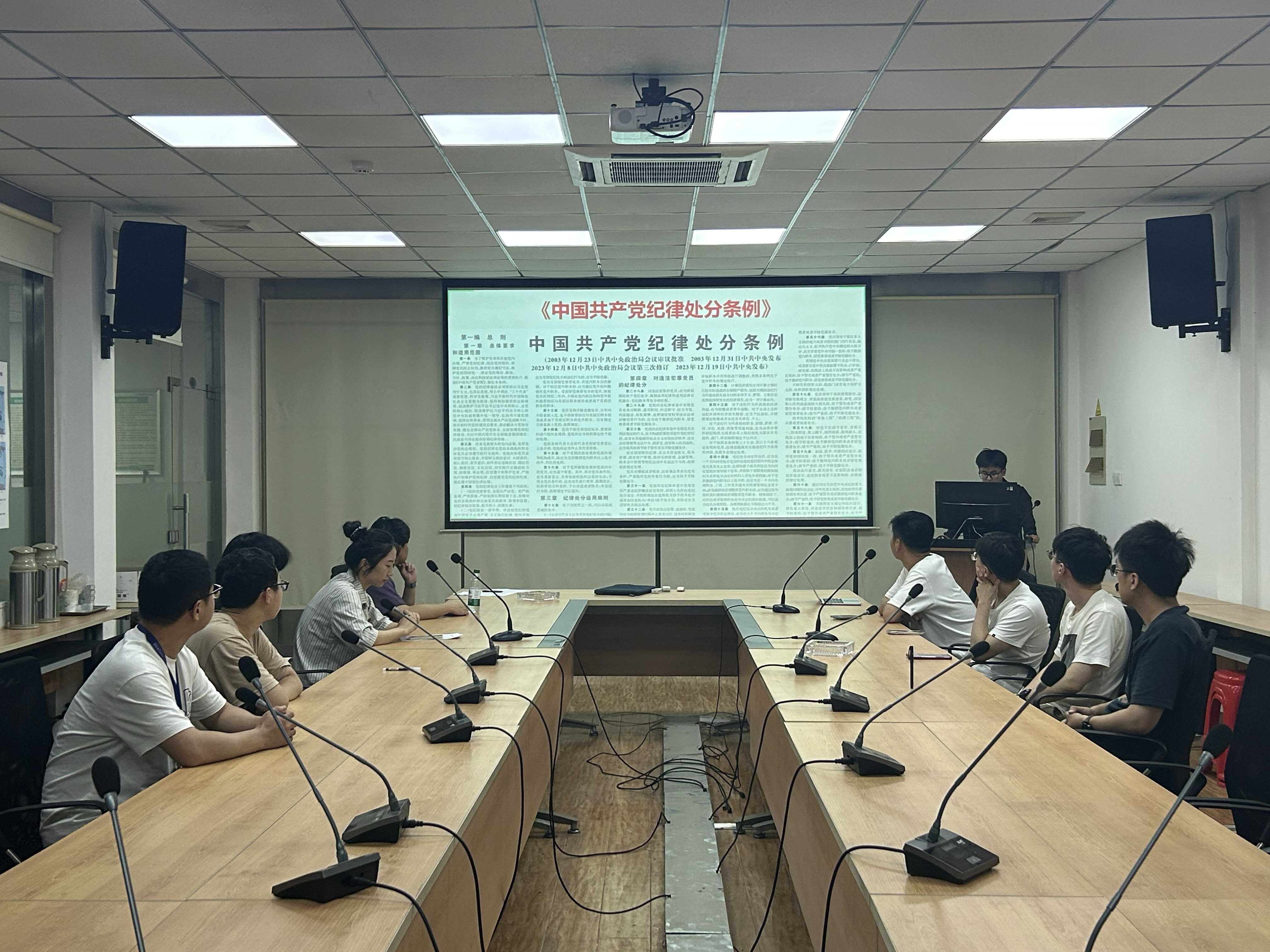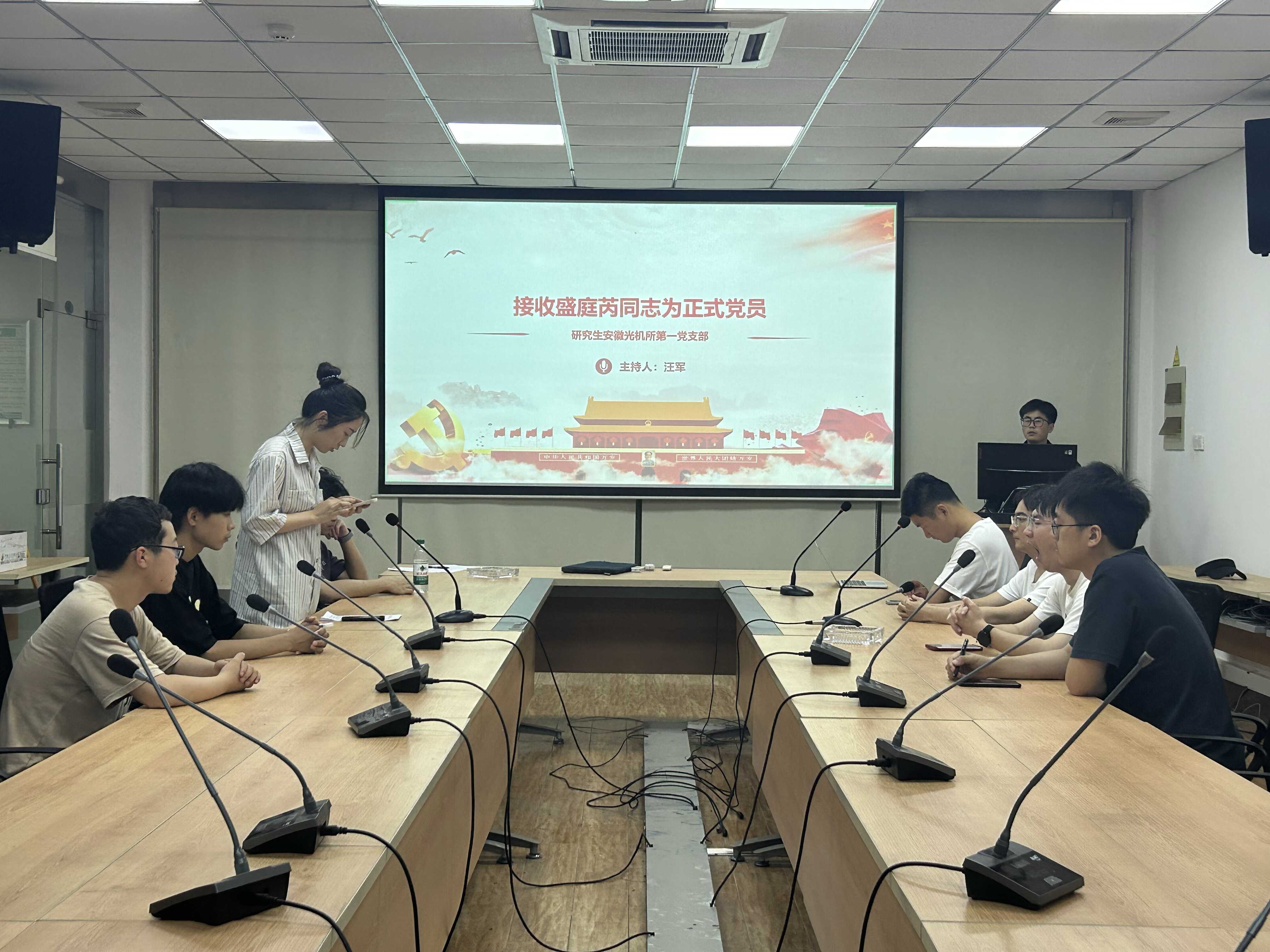 6月19日,研究生安徽光机所第一党支部于遥感中心D115会议室召开了支部党员大会。会议讨论关于盛庭芮同志的转正表决并举行了党纪教育主题党课,会议由党支部书记汪军主持。