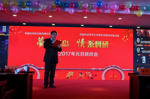 研究生处梁长浩老师为联欢会致辞,他为师生们带来新年的祝福,并报告了2016年研究院研究生培养教育取得的成绩,对全岛师生在2016年为合肥研究院研究生工作做出的努力和贡献表示衷心的感谢,期望大家在新的一年里,再接再厉、再创辉煌,祝愿同学们学业进步,身心健康、前程锦绣。