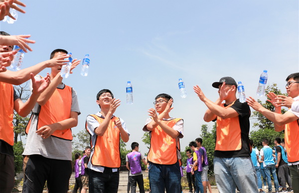 到达素拓基地后,全体同学被分成4个队,通过自荐或他荐方式产生各队队长。队长们带领自己的团队设计了队名、队旗和口号。在素拓指导老师的带领下,同学们先后开展了 “巅峰对决”、 “挑战150”、“真人CS”,以及“大脚板”和“保护公主”等各项素质拓展活动内容。在各项活动环节,同学们通过团结协作和努力拼搏,圆满完成了各项挑战任务。
