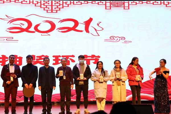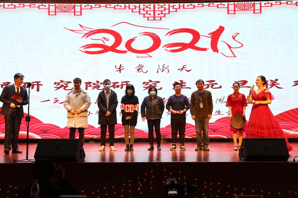 同学们为本次联欢会带来了一幕幕美轮美奂的精彩演出,古典韵律与流行劲曲相得益彰、交相辉映。演出人员通过歌曲、舞蹈、相声、小品、武术、乐器演奏等丰富的艺术表现形式,为现场观众带来了一场视听享受,展现了研究生青春阳光、蓬勃向上的精神风貌,展示了合肥研究院缤纷多彩的研究生校园文化生活。合唱《不忘初心》唱出了同学们的爱国情怀;科学岛实验中学表演的《青舞客-春畅》为师生献上了一场古典与现代交汇、美感与力量融合的视觉盛宴;武术表演《武协之抗疫篇》表现了一幕幕震撼人心而又充满温情的抗疫微缩画面;《科岛的石头会唱歌》、《海底-舞韵瑜伽》、《cavalier》、《满腹经纶》等表演也都博得了全场观众经久不息的热烈掌声。黄晨光、吴海信、王俊峰和方志友代表联欢会嘉宾进行现场抽奖,抽取了联欢会幸运观众,并向科学岛全体师生送上了美好的新年祝福。