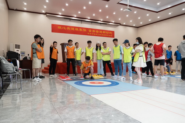 随后,在教练分组、动员下现场气氛迅速再次活跃。教练首先进行了分组,并组织“破冰环节”,同学们手拉手围成圆,在教练口令下相互配合做动作。稍后不同组的同学互相介绍,起队名,喊口号,彼此很快熟悉起来。然后进行了“旱冰壶”“象牙塔”等团队游戏,同学间的默契有了显著提高,增强了团队间合作意识。