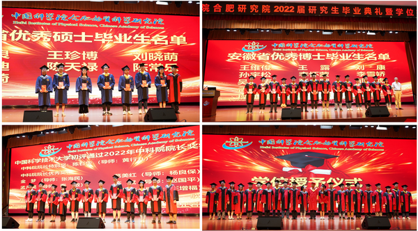 随后,合肥研究院总会计师陈宗发宣读2022年度中国科学技术大优秀硕士毕业生名单并颁奖;副院长程艳宣读2022年度中国科学技术大学优秀博士毕业生名单并颁奖;副院长王俊峰宣读中国科学技术大学评审通过2022年中科院院长奖学金名单并颁发证书;副院长吴海信宣读安徽省优秀硕士毕业生名单并颁奖,党委副书记兼纪委书记邹士平宣读安徽省优秀博士毕业生名单并颁奖。