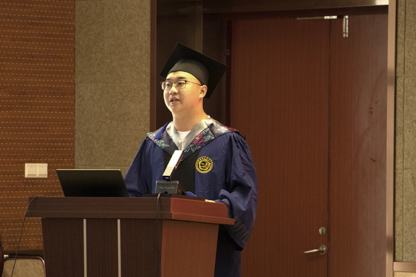 毕业生代表马国良分享了在科学岛学习生活经历。感谢智能所领导老师在求学道路上的支持与帮助。他表示,将来无论走到哪里都不会忘记科学家精神赋予青年的职责与使命。