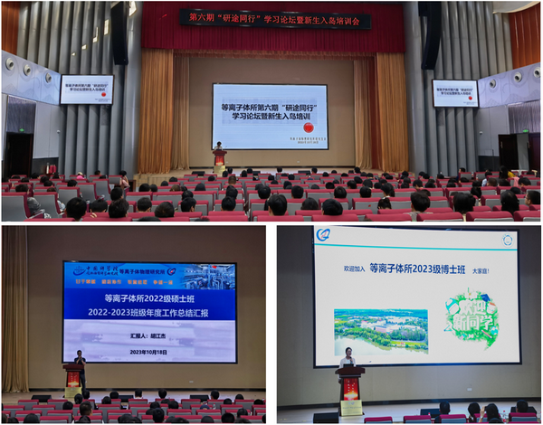 10月18日,等离子体所研究生第六期“研途同行”学习论坛暨新生入岛培训会8-2二楼小礼堂举行。本次论坛邀请了科研大咖张伟老师、学术新星吕一鸣博士、王维俊博士和孟令义博士。教育主管常昱红、班主任谢亚东、辅导员窦君,以及2021级硕士、2022级硕士、2023级博士参加会议,会议由等离子体所研究生会主席李成文主持。